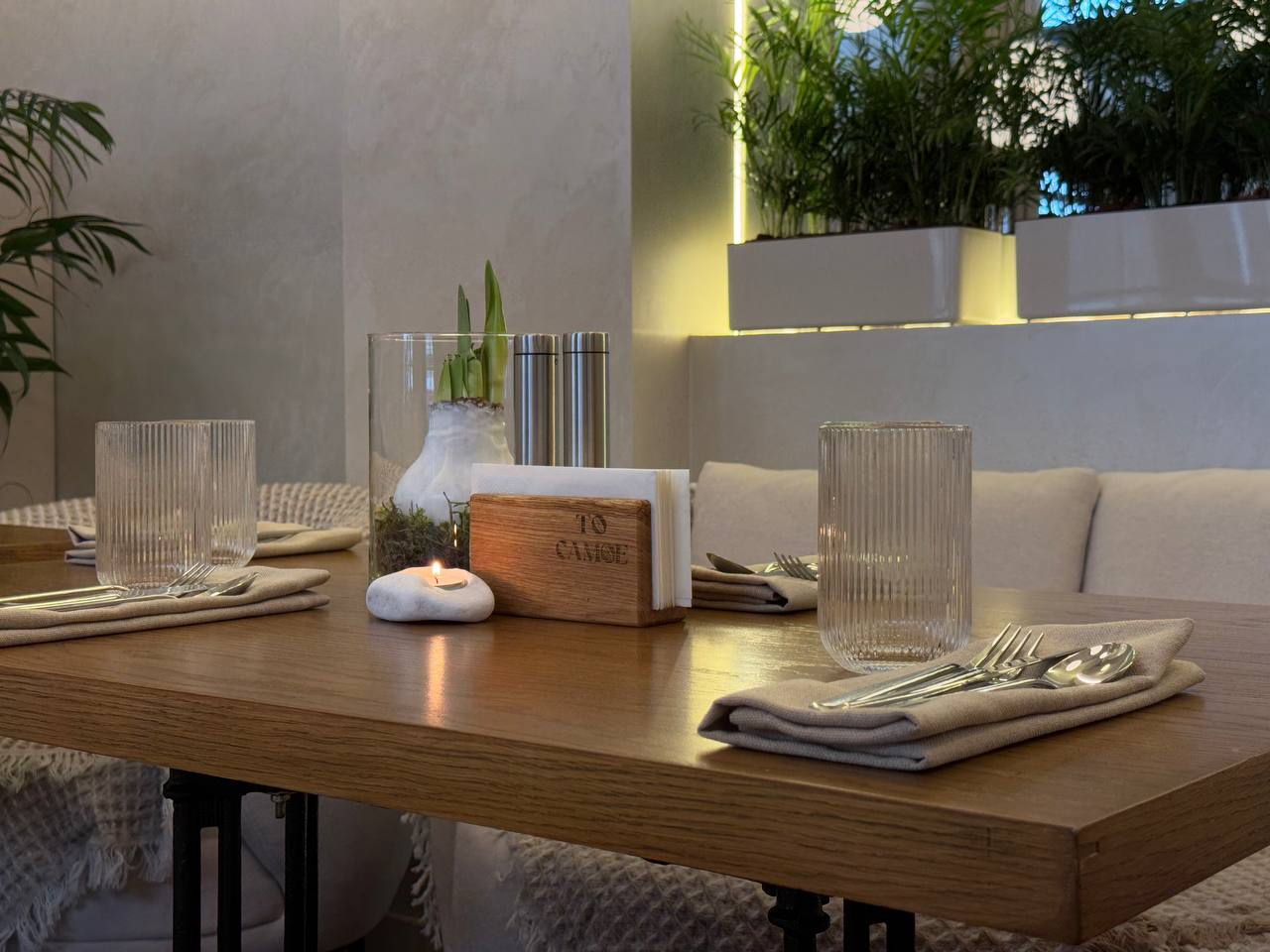 Очень уютное место, светлое и уточненное. Нежный бежевый интерьер, красивые притягательные детали, которые хочется рассматривать.